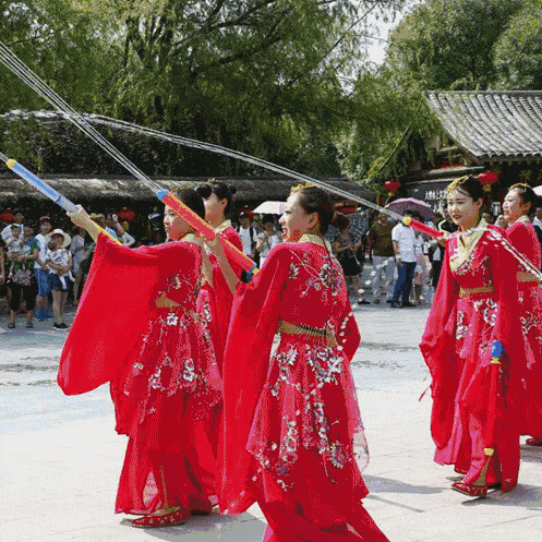 另外集聲、光、水、景為一體的水鼓表演和激情樂隊特色舞蹈,景區(qū)內的水槍大戰(zhàn)和推鐵環(huán)、打陀螺、抖空竹、推獨輪車、挑柴擔等,都是夜游清明上河園不可或缺的體驗項目。