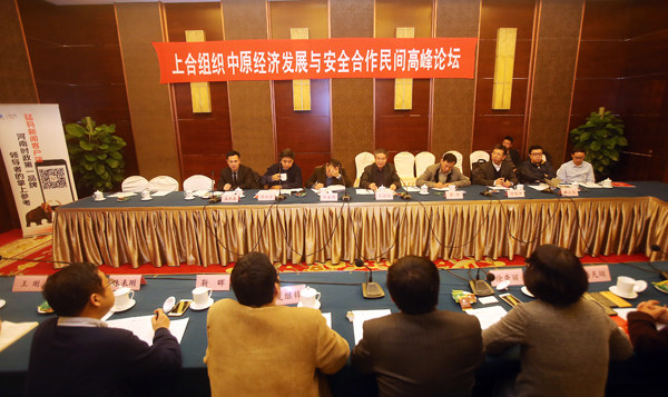 12月13日上午,北京河南大廈四層中原廳內(nèi)高朋滿座,思想碰撞,創(chuàng)意迭出。由河南省新聞出版廣電局、北京河南大廈主辦,大象融媒·大象智庫、大象融媒·猛犸新聞 、香港天溯智庫承辦的“上合組織和中原經(jīng)濟發(fā)展安全與合作2015民間高峰論壇”在這里成功舉辦。中國上海合作組織國家研究會中心高級顧問王海運少將等一批國際區(qū)域經(jīng)濟、安全合作領(lǐng)域的國家級研究專家和有影響力的實戰(zhàn)派“大咖”圍繞“國際新格局下上合組織的新使命”、“一帶一路戰(zhàn)略的安全保障”、“一帶一路戰(zhàn)略中的中原企業(yè)與地方政府優(yōu)劣勢”、“ 中原企業(yè)在上合組織成員國的商機與風(fēng)險”等話題展開高端座談。